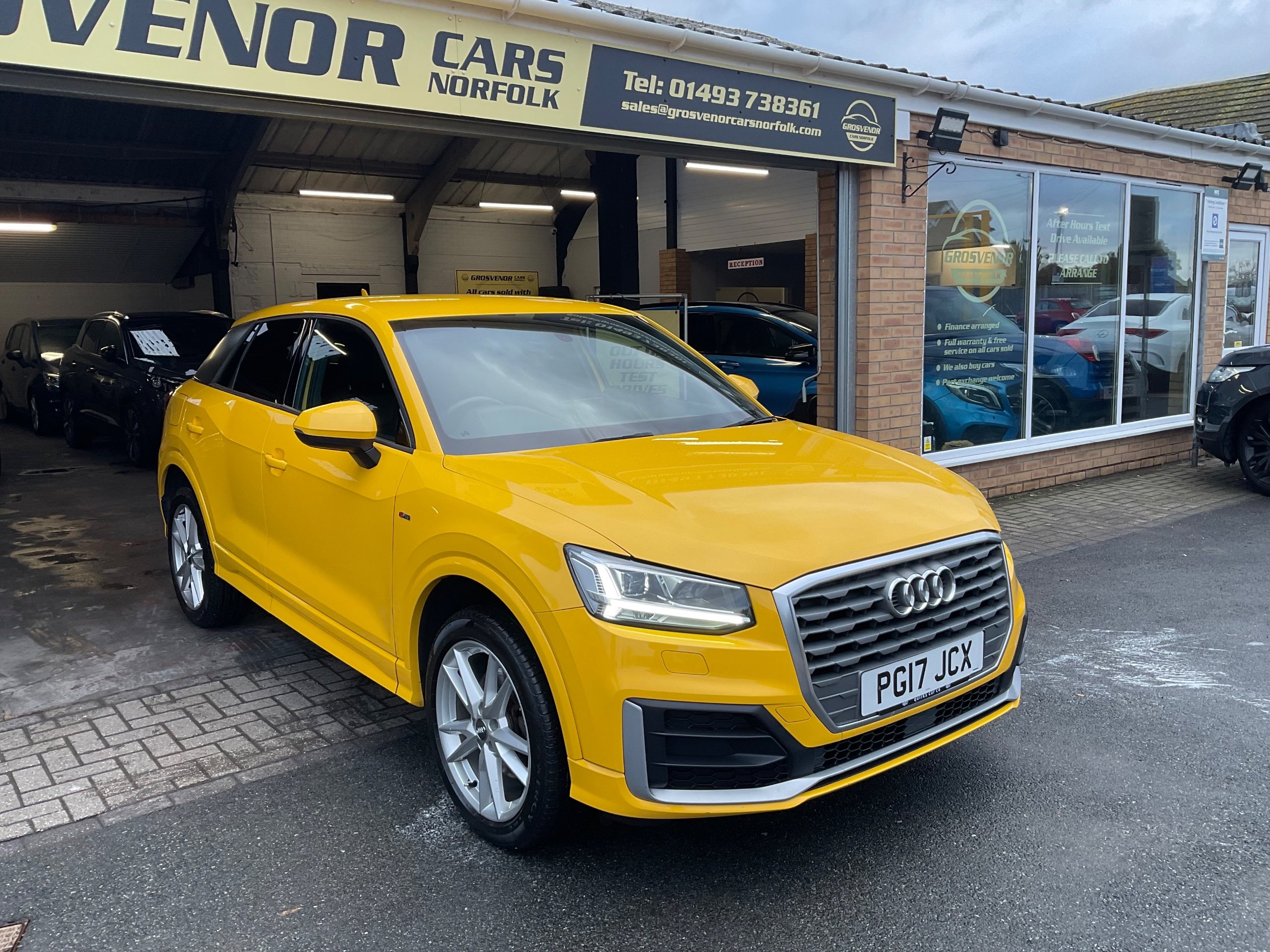 Audi Q2 SUV with 80000 miles finished in Vegas Yellow, Technology pack and many more optional extras. With 5 seats and 5 doors, it is ULEZ compliant and equipped with a 1.4 TFSI CoD S line engine, delivering 150 ps. This Euro 6 (s/s) vehicle boasts sleek 18in alloy wheels in a 5-spoke Y design and features anti-theft locking wheel bolts, black window trims, body-coloured bumpers, and body-coloured door mirrors. Its powerful performance and stylish design make it a reliable and eye-catching choice for both city and country driving. Buy with confidence at Grosvenor Cars Norfolk all our customers have the added peace of mind that all our vehicles are supplied with a minimum of 8 months mot, sales service, pre delivery inspection & minimum 3 months parts & labour warranty for total peace of mind which can also be extended to 6 or 12 months for a small fee. We deliverer a trusted service from one of the longest standing indoor dealerships in the town with outstanding google reviews. Part exchange welcome & finance available. We offer both PCP and Hire Purchase agreements, please call us for a free quotation or more information. All our vehicles have vast specifications, in most cases, far too much too list, so please always check the vehicles exact specification prior to purchase. We always have at least 30 vehicles in stock to choose from. For more information, please call 01493 738361 or visit our website www.grosvenorcarsnorfolk.co.uk -