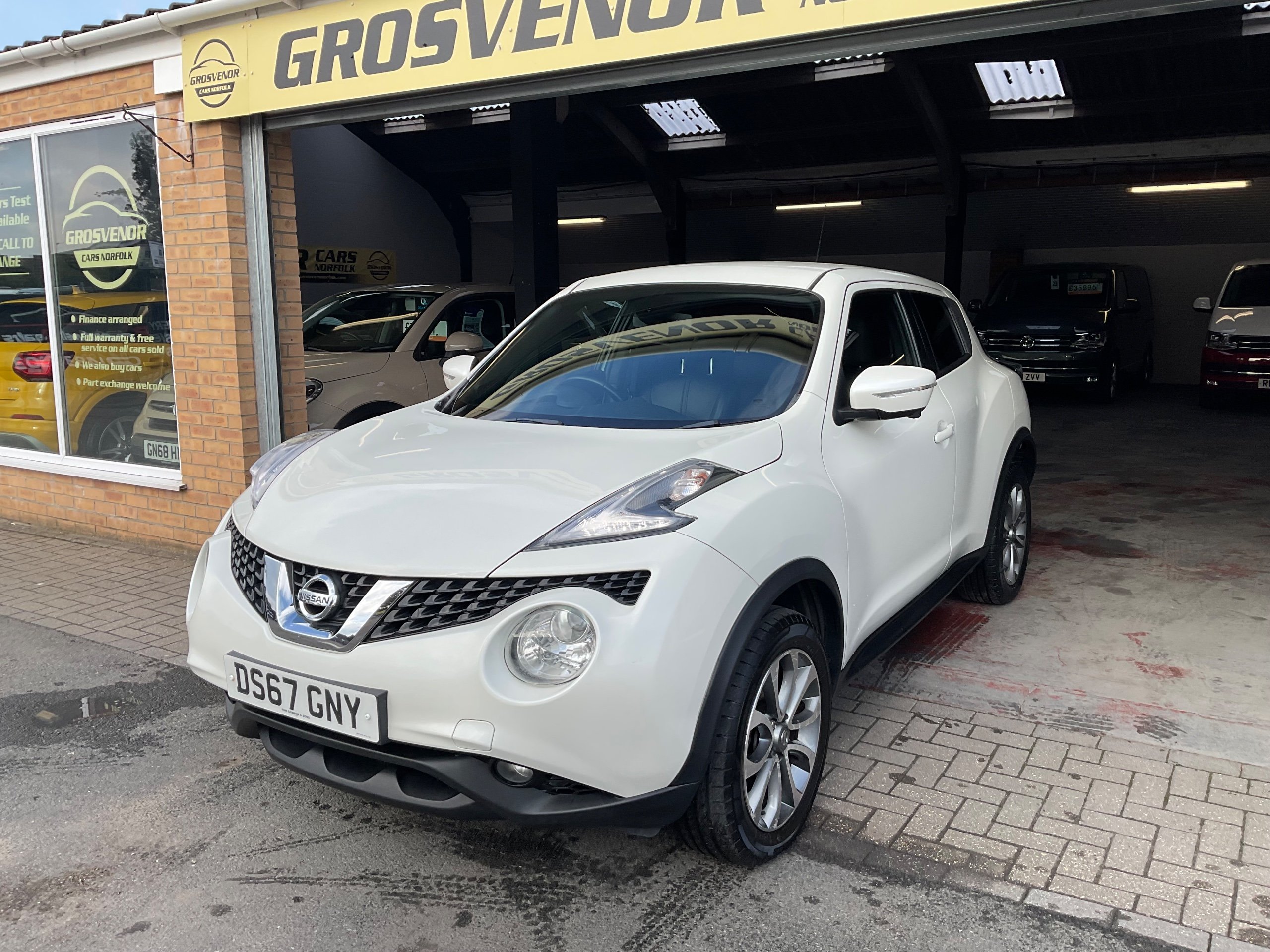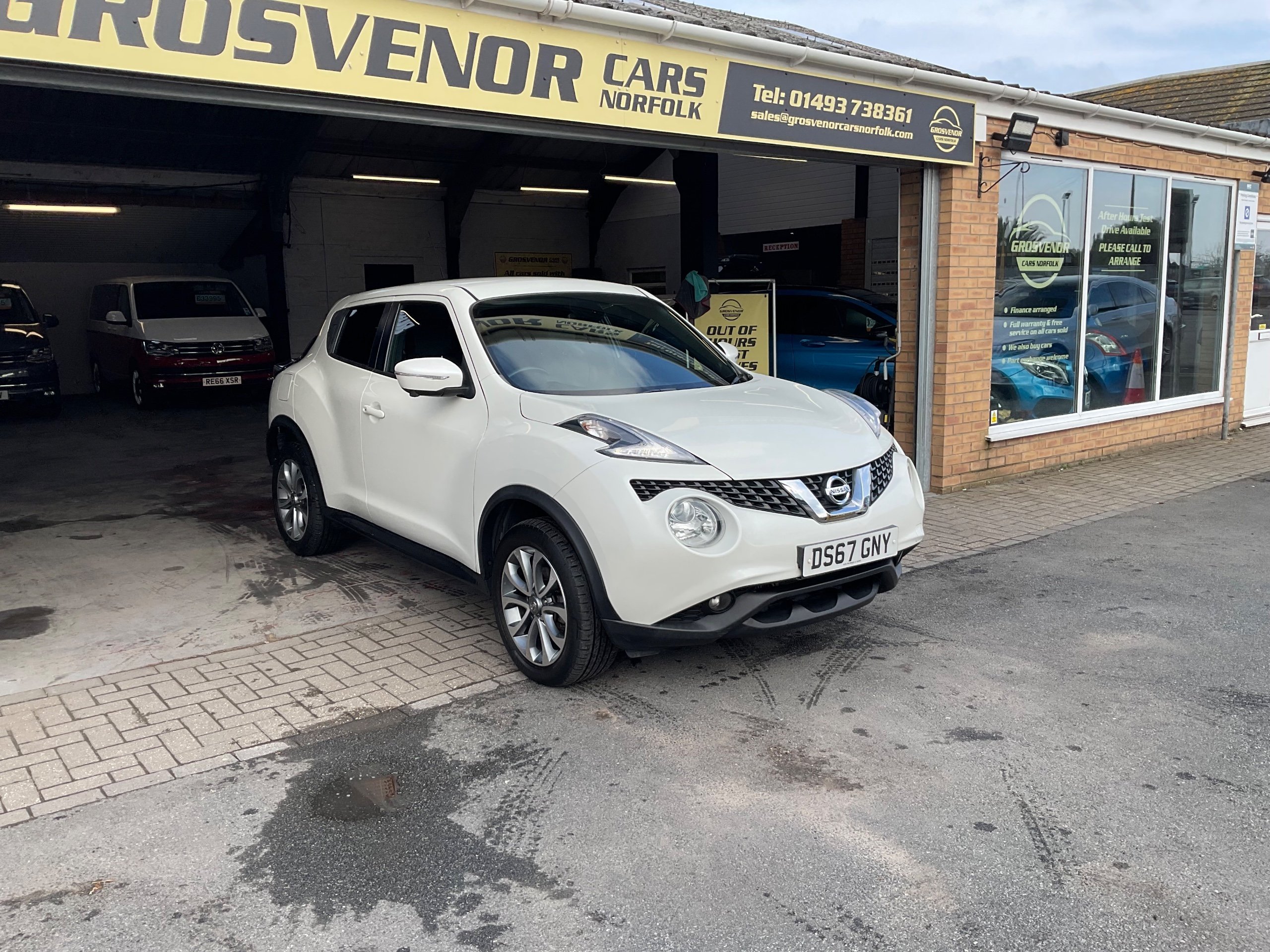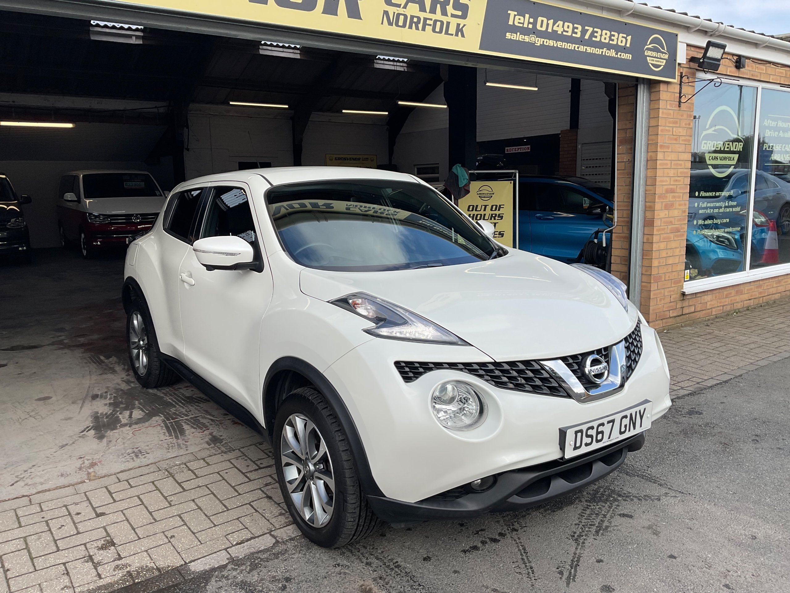 This 2017 Nissan Juke 1.2 DIG-T Tekna SUV with only 9000 miles on the clock is the perfect family vehicle, with 5 seats and 5 doors offering ample space for passengers and luggage. Powered by a petrol engine, this car is ULEZ compliant and comes with an MOT valid until 02/11/2026, giving you peace of mind for years to come. Packed with features such as a front 12V socket, AUX socket for MP3 player, DAB and internet radio with 6 speakers, and Bluetooth integration, this SUV provides modern convenience and entertainment. Whether you're driving around the city or heading out on a long road trip, the Nissan Juke is ready to take you there in style and comfort. Buy with confidence at Grosvenor Cars Norfolk all our customers have the added peace of mind that all our vehicles are supplied with a minimum of 8 months mot, sales service, pre delivery inspection & minimum 3 months parts & labour warranty for total peace of mind which can also be extended to 6 or 12 months for a small fee. We deliverer a trusted service from one of the longest standing indoor dealerships in the town with outstanding google reviews. Part exchange welcome & finance available. We offer both PCP and Hire Purchase agreements, please call us for a free quotation or more information. All our vehicles have vast specifications, in most cases, far too much too list, so please always check the vehicles exact specification prior to purchase. We always have at least 30 vehicles in stock to choose from. For more information, please call 01493 738361 or visit our website www.grosvenorcarsnorfolk.co.uk -