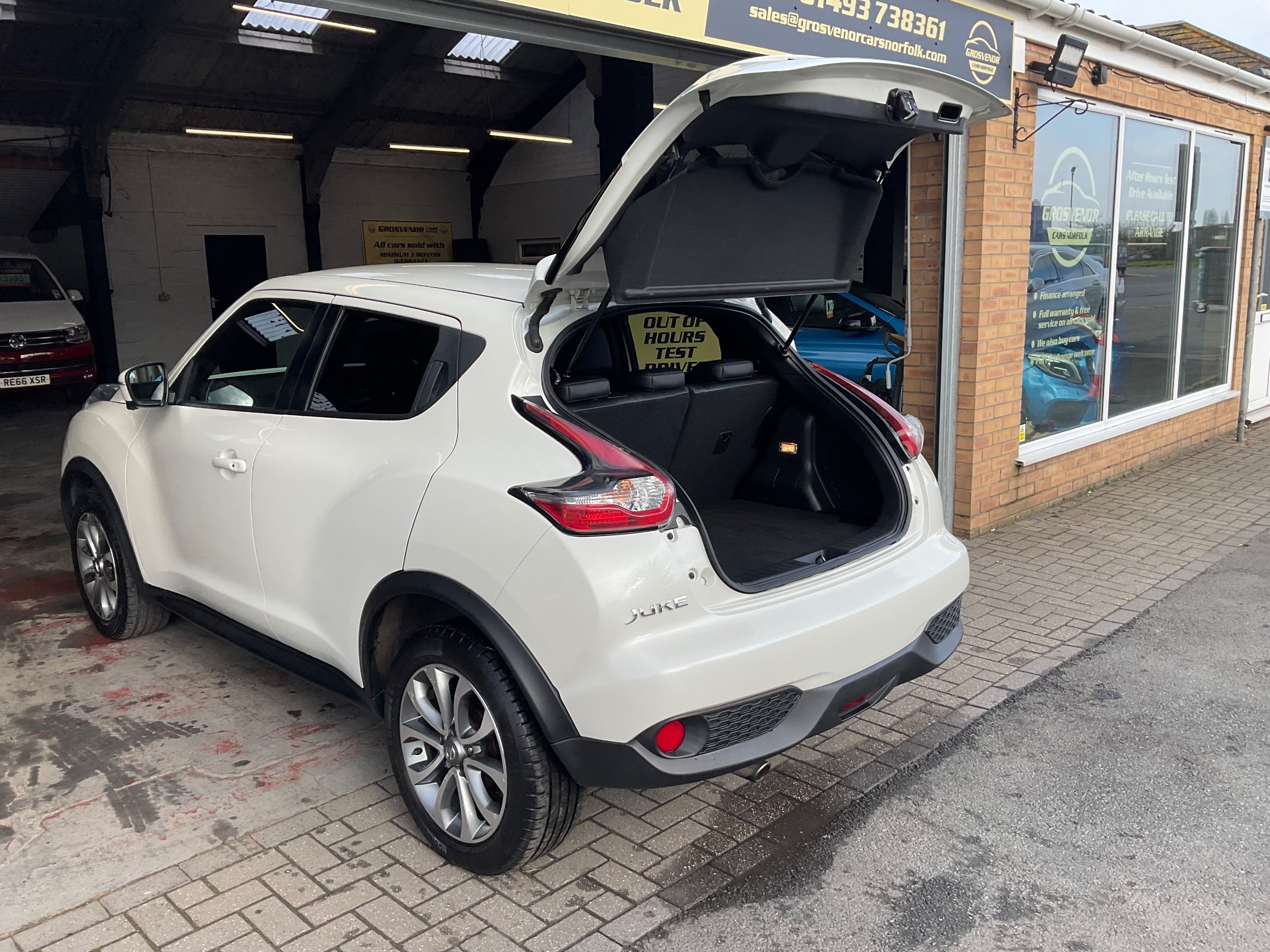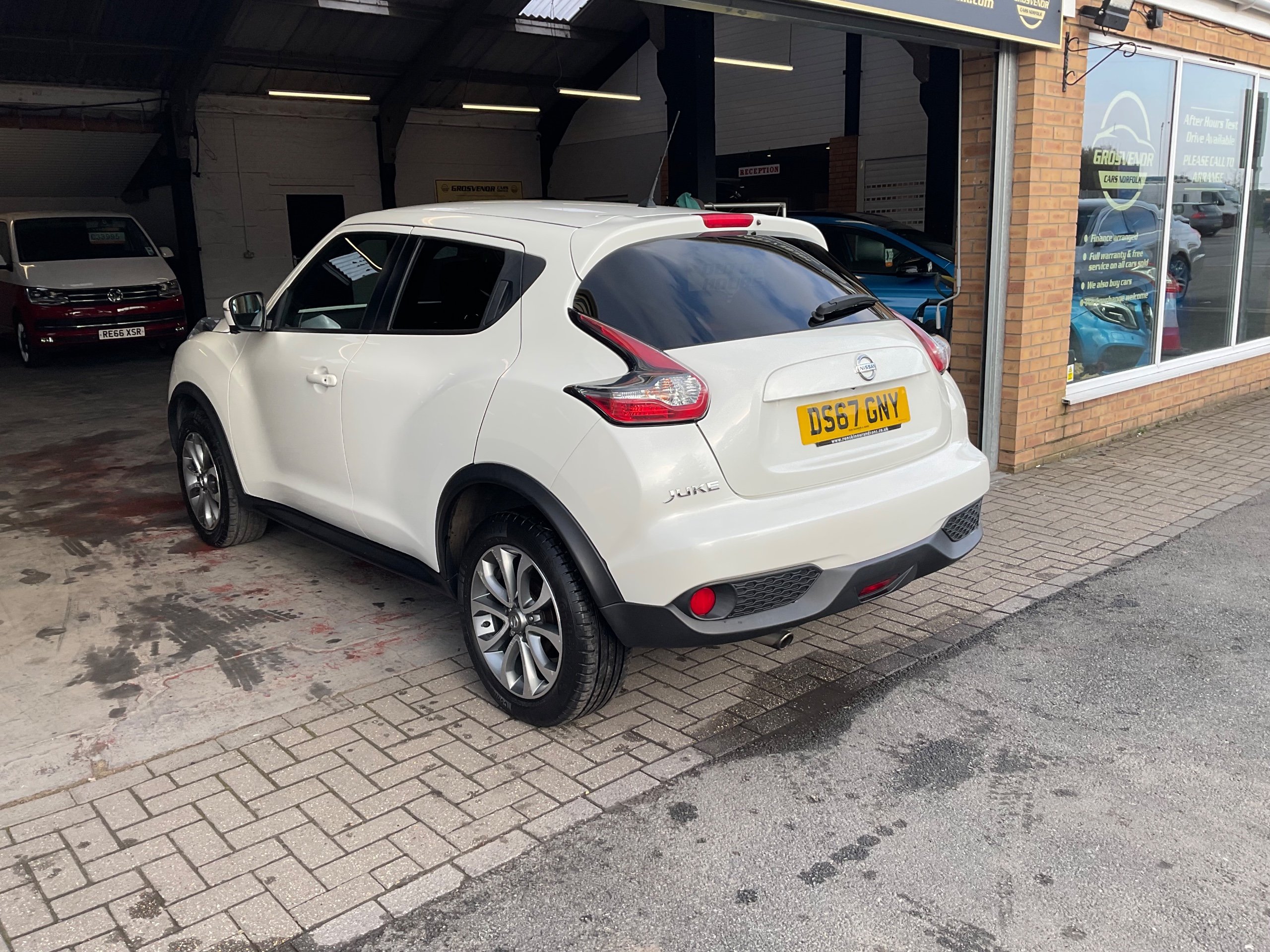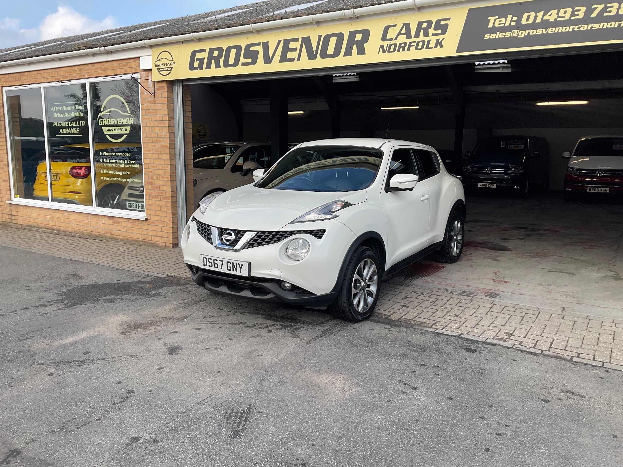 This 2017 Nissan Juke 1.2 DIG-T Tekna SUV with only 9000 miles on the clock is the perfect family vehicle, with 5 seats and 5 doors offering ample space for passengers and luggage. Powered by a petrol engine, this car is ULEZ compliant and comes with an MOT valid until 02/11/2026, giving you peace of mind for years to come. Packed with features such as a front 12V socket, AUX socket for MP3 player, DAB and internet radio with 6 speakers, and Bluetooth integration, this SUV provides modern convenience and entertainment. Whether you're driving around the city or heading out on a long road trip, the Nissan Juke is ready to take you there in style and comfort. Buy with confidence at Grosvenor Cars Norfolk all our customers have the added peace of mind that all our vehicles are supplied with a minimum of 8 months mot, sales service, pre delivery inspection & minimum 3 months parts & labour warranty for total peace of mind which can also be extended to 6 or 12 months for a small fee. We deliverer a trusted service from one of the longest standing indoor dealerships in the town with outstanding google reviews. Part exchange welcome & finance available. We offer both PCP and Hire Purchase agreements, please call us for a free quotation or more information. All our vehicles have vast specifications, in most cases, far too much too list, so please always check the vehicles exact specification prior to purchase. We always have at least 30 vehicles in stock to choose from. For more information, please call 01493 738361 or visit our website www.grosvenorcarsnorfolk.co.uk -