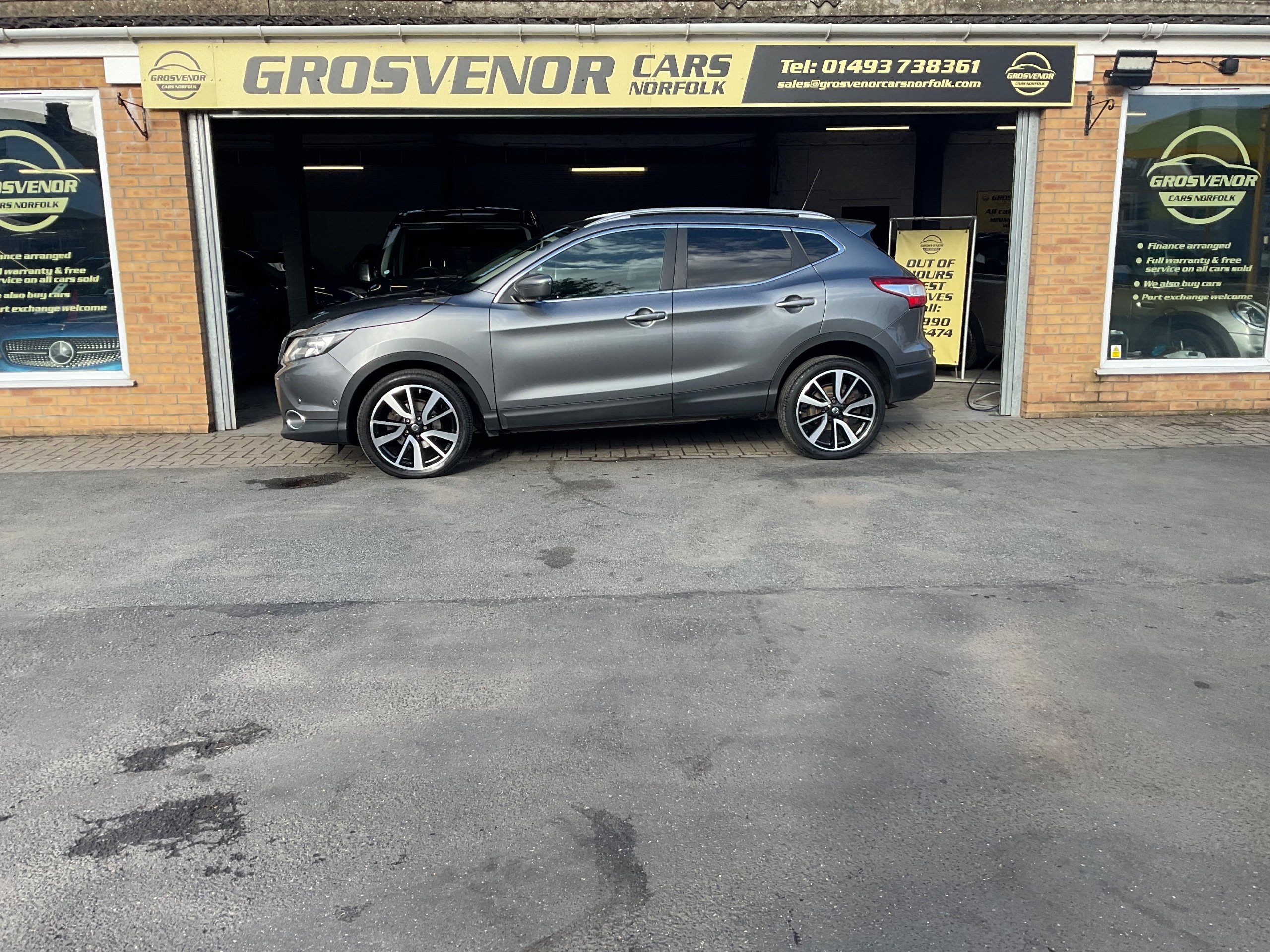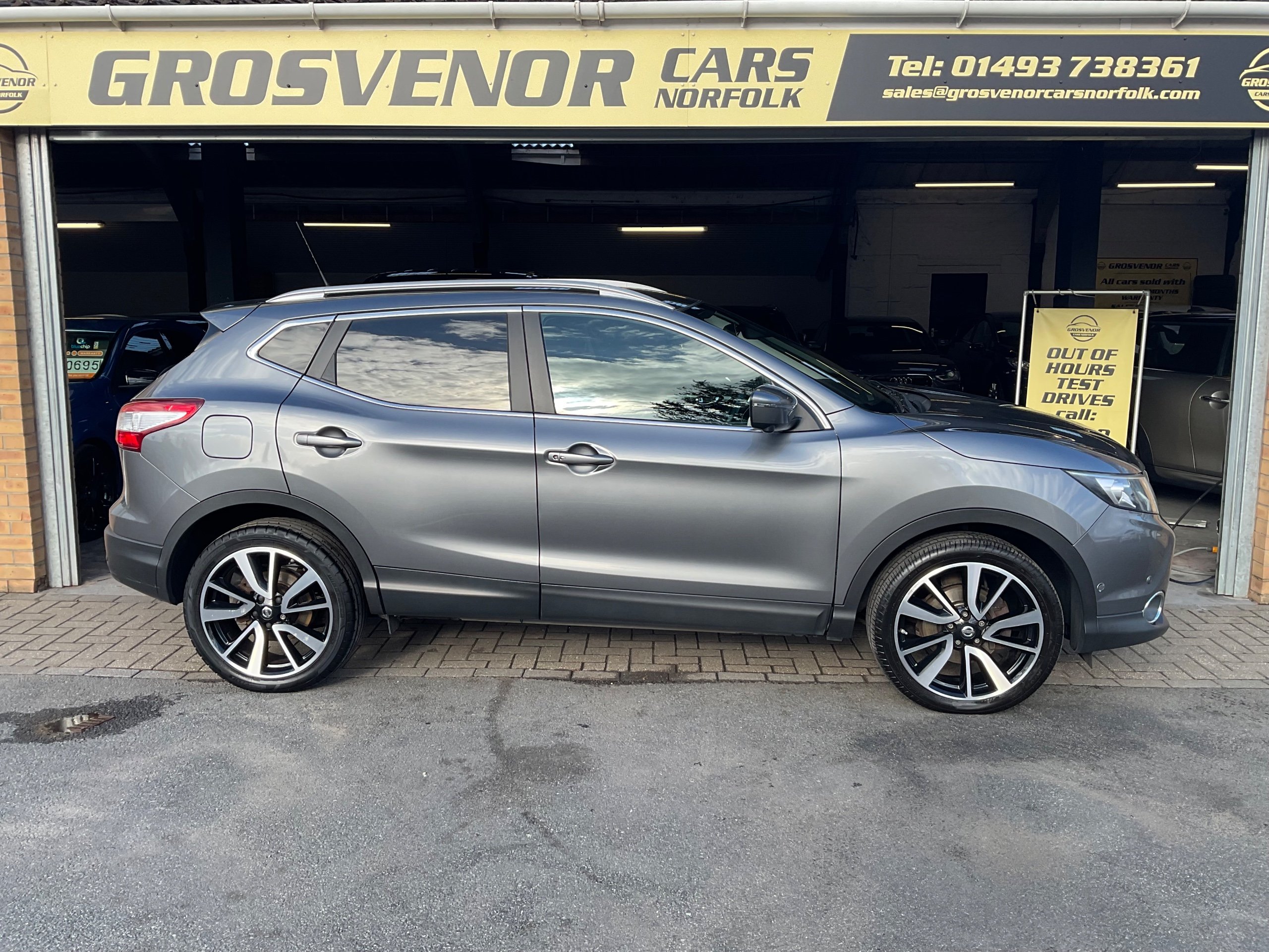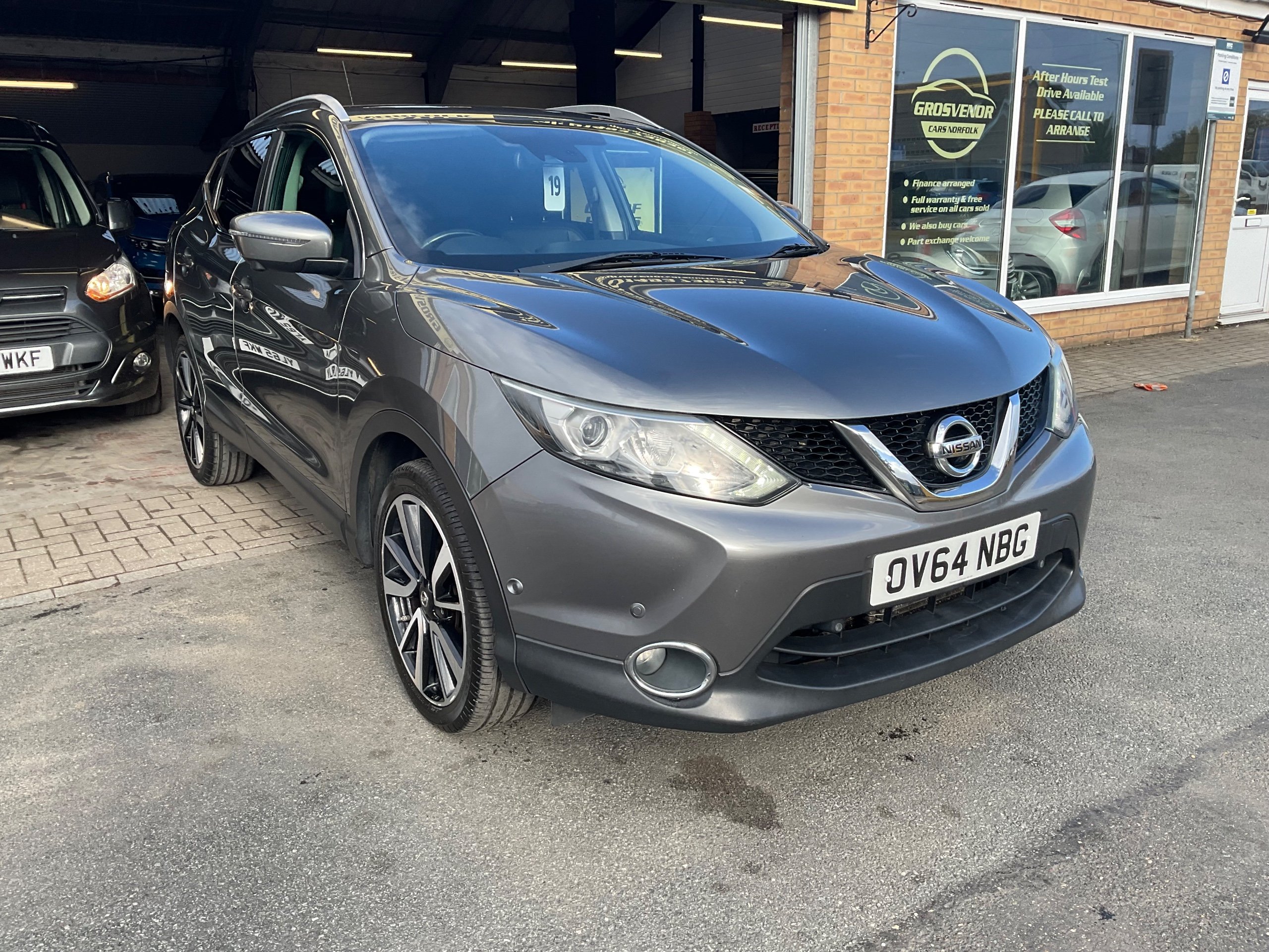This 2014 Nissan Qashqai 1.2 DIG-T Tekna SUV with 80000 miles on the clock is a reliable and stylish choice for those in search of a practical yet comfortable ride. Running on petrol and ULEZ compliant, this 5-door, 5-seat SUV comes with an MOT valid until 28/02/2027, meaning you can hit the road with confidence. Its 115 ps engine and XTRON 2WD Euro 5 (s/s) transmission provide a smooth and fuel-efficient drive, while features such as 19in Alloy Wheels, Black Honeycomb Front Grille, and Chrome Glass Surround add a touch of sophistication to its exterior. In addition, the body-coloured handles and bumpers seamlessly blend in, creating a sleek and modern look. Whether it's a weekend getaway or everyday commute, this Qashqai is ready to take you there in style and comfort. Buy with confidence at Grosvenor Cars Norfolk all our customers have the added peace of mind that all our vehicles are supplied with a minimum of 8 months mot, sales service, pre delivery inspection & minimum 3 months parts & labour warranty for total peace of mind which can also be extended to 6 or 12 months for a small fee. We deliverer a trusted service from one of the longest standing indoor dealerships in the town with outstanding google reviews. Part exchange welcome & finance available. We offer both PCP and Hire Purchase agreements, please call us for a free quotation or more information. All our vehicles have vast specifications, in most cases, far too much too list, so please always check the vehicles exact specification prior to purchase. We always have at least 30 vehicles in stock to choose from. For more information, please call 01493 738361 or visit our website www.grosvenorcarsnorfolk.co.uk -